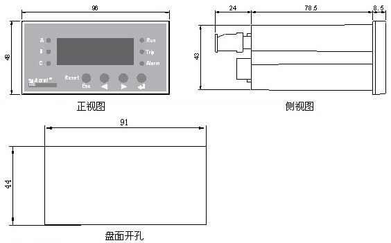 附加功能:起動(dòng)控制、溫度保護(hù)、報(bào)警輸出、RS485通訊接口、Modbus協(xié)議、4-20mA模擬量輸出、8個(gè)SOE事件記錄