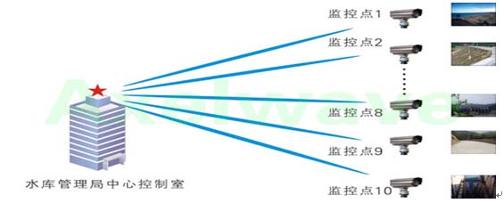 該系統(tǒng)主要由三部分組成,前端視頻、語(yǔ)音、數(shù)據(jù)等采集系統(tǒng),無線網(wǎng)絡(luò)傳輸系統(tǒng),水庫(kù)管理中心控制系統(tǒng)。前端的多路視頻、數(shù)據(jù)及IP電話等都先通過交換機(jī)進(jìn)行匯聚,然后進(jìn)入艾克賽爾(Axelwave)的無線網(wǎng)橋進(jìn)行無線傳輸,所有前端點(diǎn)都采用太陽(yáng)能供電系統(tǒng)供電,在陰雨條件下可以支持連續(xù)工作72小時(shí)以上。中心水庫(kù)管理控制室與前端組成點(diǎn)對(duì)多點(diǎn)的無線傳輸鏈路,將前端的所有信息匯總至控制室。控制中心可以實(shí)時(shí)監(jiān)控各前端點(diǎn)的視頻圖像,如水庫(kù)水位情況,閘門、大壩的工作狀態(tài),水面及岸邊情況等等,另外還能觀察到前端發(fā)回各種的實(shí)時(shí)數(shù)據(jù)信息,如水庫(kù)水質(zhì)變化、水庫(kù)天氣變化等,真正做到對(duì)水庫(kù)各重點(diǎn)區(qū)域的全天候、多角度、全方位的實(shí)時(shí)監(jiān)控,做到有效應(yīng)對(duì)各種突發(fā)事件,確保了水庫(kù)各方面的安全運(yùn)行。