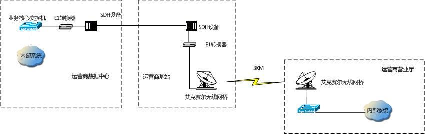 艾克賽爾(iAxel)這一無(wú)線寬帶傳輸系統(tǒng),針對(duì)“最后一公里”接入而設(shè)計(jì),使用寬帶無(wú)線網(wǎng)橋設(shè)備。具體而言,運(yùn)營(yíng)商的內(nèi)部網(wǎng)絡(luò)系統(tǒng)通常都是接入到運(yùn)營(yíng)商數(shù)據(jù)中心專門(mén)的業(yè)務(wù)交換機(jī),中間通過(guò)E1、運(yùn)營(yíng)商SDH系統(tǒng)在運(yùn)營(yíng)商分布在城市與鄉(xiāng)村的基站落地,再利用艾克賽爾(iAxel)無(wú)線網(wǎng)橋?qū)崿F(xiàn)營(yíng)業(yè)廳內(nèi)部網(wǎng)絡(luò)系統(tǒng)的接入。